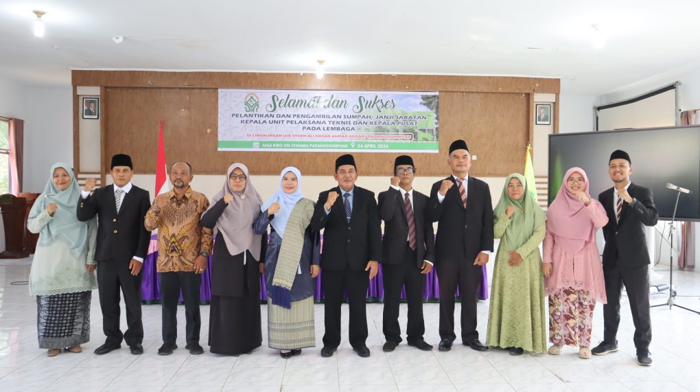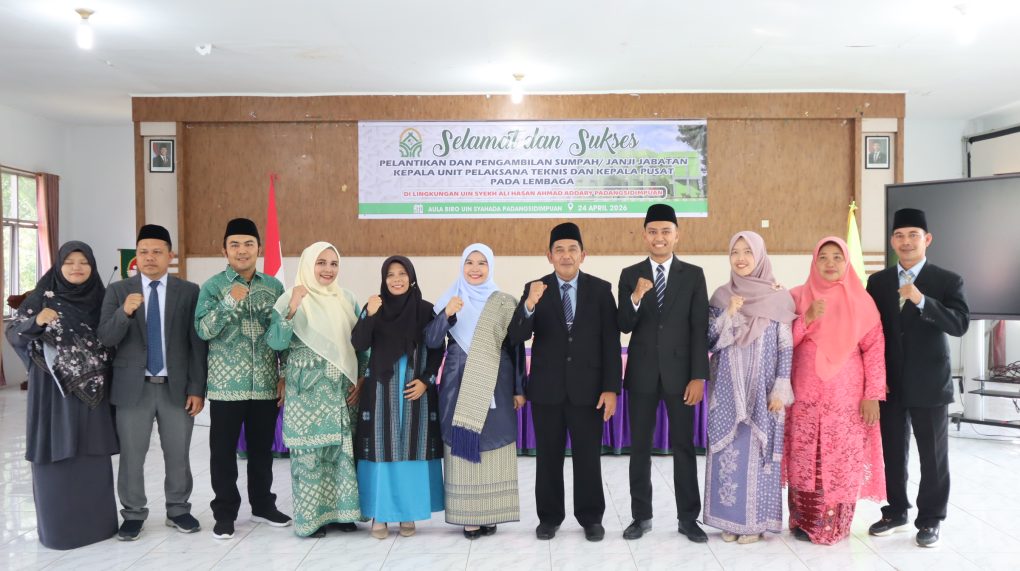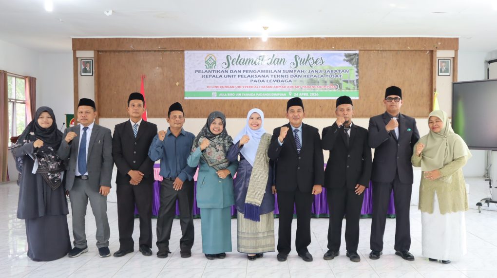 Padangsidimpuan, 24 April 2026 — Universitas Islam Negeri (UIN) Syekh Ali Hasan Ahmad Addary Padangsidimpuan kembali melaksanakan Pelantikan dan Pengambilan Sumpah/Janji Jabatan Kepala Unit Pelaksana Teknis (UPT) serta Kepala Pusat pada lembaga LPM dan LPPM. Kegiatan yang berlangsung khidmat di Aula Biro Rektorat Lantai II pada Jumat (24/4/2026) tersebut dipimpin langsung oleh Rektor UIN Syahada, Prof. Dr. H. Sumper Mulia Harahap, M.Ag.